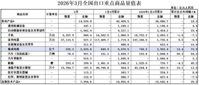 2026年一季度重要外贸数据一览